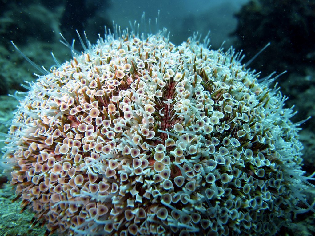 Today I'll be writing about sea urchins. I would love to talk about a specific type which is called "Toxic flower sea urchin". I found out about this animal when my eight year old brother wanted to watch a Netflix show with me. He loves animals and he found a show called "72 dangerous animals" which shows different animals that are agressive or letal in two continents: Asia and Latin America (as far as I know) -The show also has another version called "72 cutest animals"-. In the first chapter I found out about this kind of sea urchins, knows as a really dangerous animal in Asia. It has tiny tongs (called pedicellariae), almost microscopic, which stick to the skin immediately when someone touches them, and release a poison which is letal for humans, or at least cause an unbearable pain and paralysis . They also have predators, so when they are in danger, those tiny tongs are able to take rocks that are near to the sea urchin and use them to cover up, so they can not be seen by predators. What I like the most about this animals is that those pedicellariae look like tiny flowers, and it's actually very beautiful, but they are incredible dangerous and has killed many people in Japan.